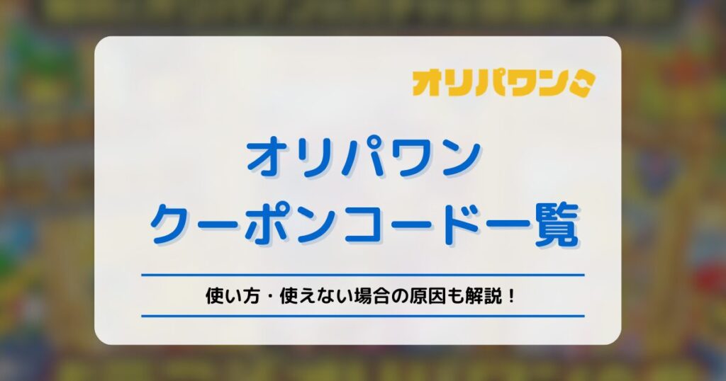 オリパワンのクーポン一覧 使い方・使えない場合の対処法などについても解説!