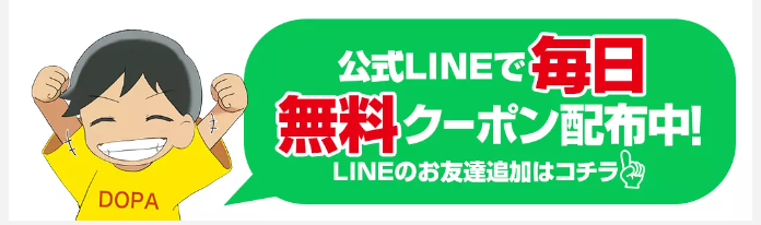 DOPAの公式LINEを友だち追加した場合、初回追加時や毎日の配布で無料クーポンを入手できます。