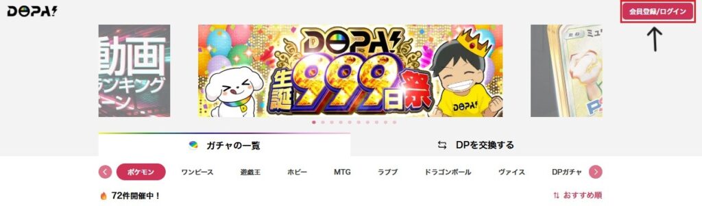 DOPAはポケカを含めた6種類のトレカに加えて、ホビー商品のオリパも取り扱うオンラインオリパです。