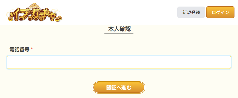 イブガチャでは会員登録の前に、電話番号による本人確認を行います。
