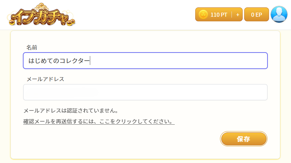 イブガチャでクーポンコードの画面を表示させるためには、メールアドレスの確認を完了させる必要があります。