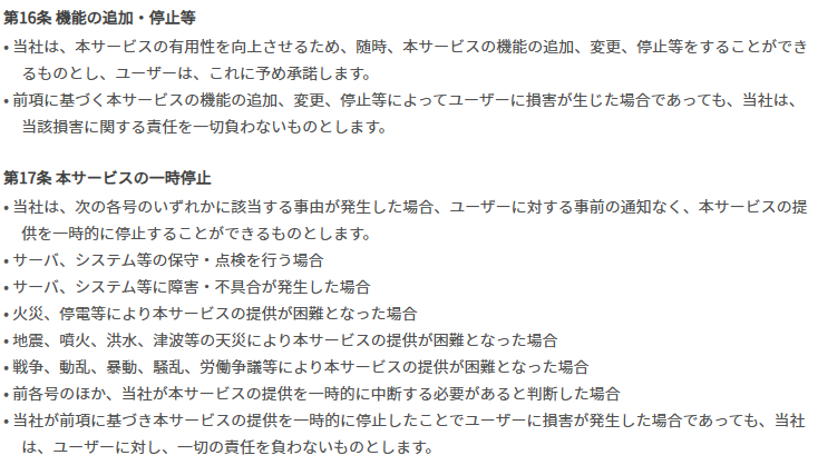 イブガチャでは保守点検や不具合の発生時に、サービスの変更や停止を行えると利用規約上に明記しています。