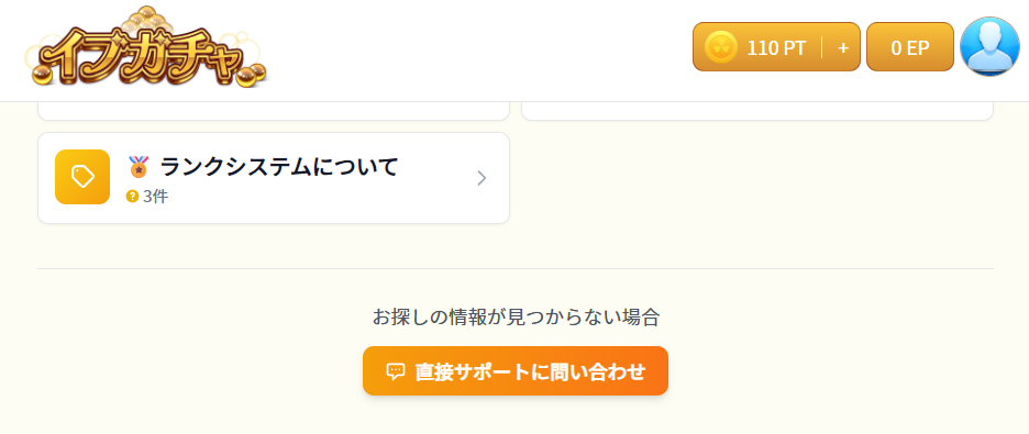 イブガチャの「よくある質問」の画面は、ログイン後のメニュー内で選択できます。