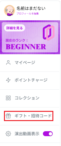 一方、会員登録後は自分も紹介者として、ほかの人に対して招待コードを発行できます。
