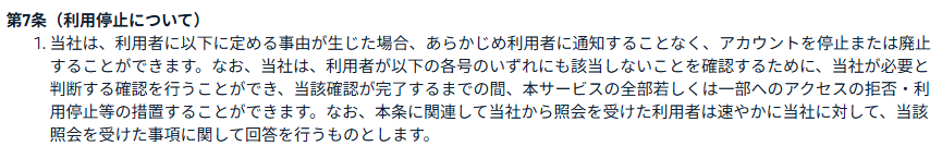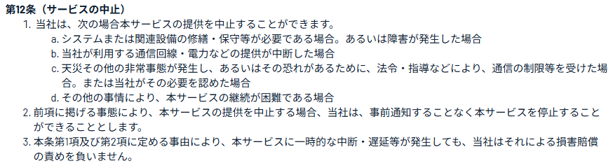 ICHICAオリパは利用規約上でサービスの中止や変更について、事前通知なしで行えると明記しています。