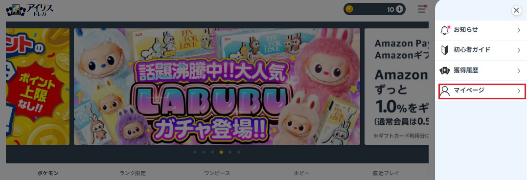 画面右側にメニュー一覧が表示させるため、「マイページ」を選択しましょう。