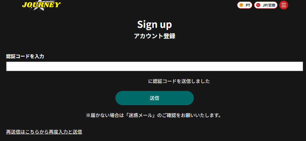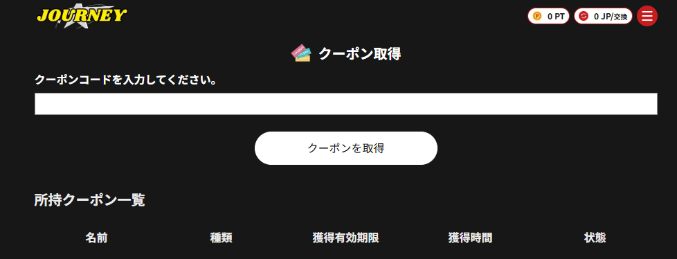 ジャーニーガチャのクーポンコードや招待コードは、すべて会員登録後に入力できます。