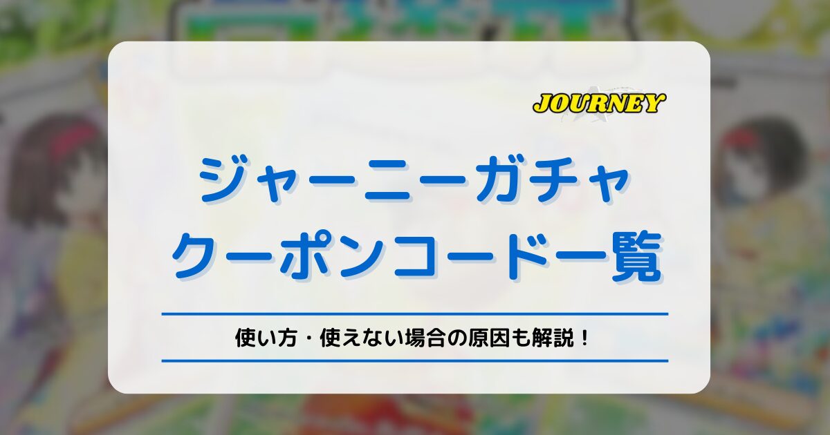 この記事では、ジャーニーガチャのクーポンコードについて、主な入手場所や入力方法などをまとめました。