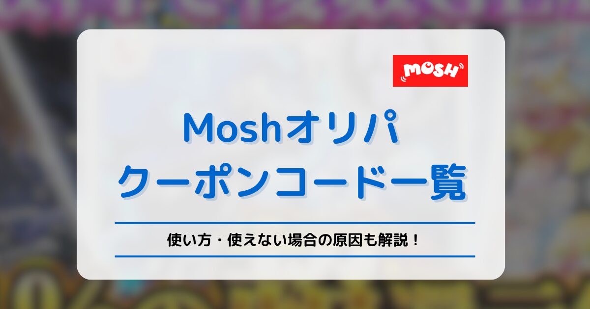 この記事では、Moshオリパのクーポンコード一覧や入力方法などをまとめましたので、新規の方も登録済みの人もぜひ参考にしてください!