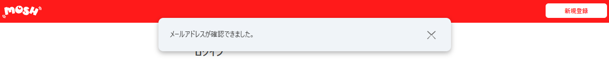 本人確認が完了した場合、Moshオリパのサイト上に「メールアドレスが確認できました」と表示されます。