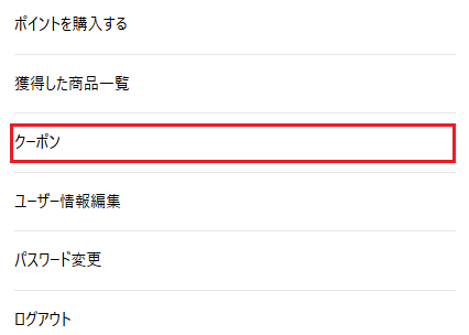 上から3番目にある「クーポン」を選択しましょう。