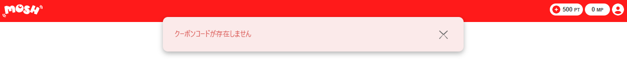 Moshオリパでは利用者側のミス、もしくは運営側の不具合でクーポンコードの反映や適用ができない場合があります。
