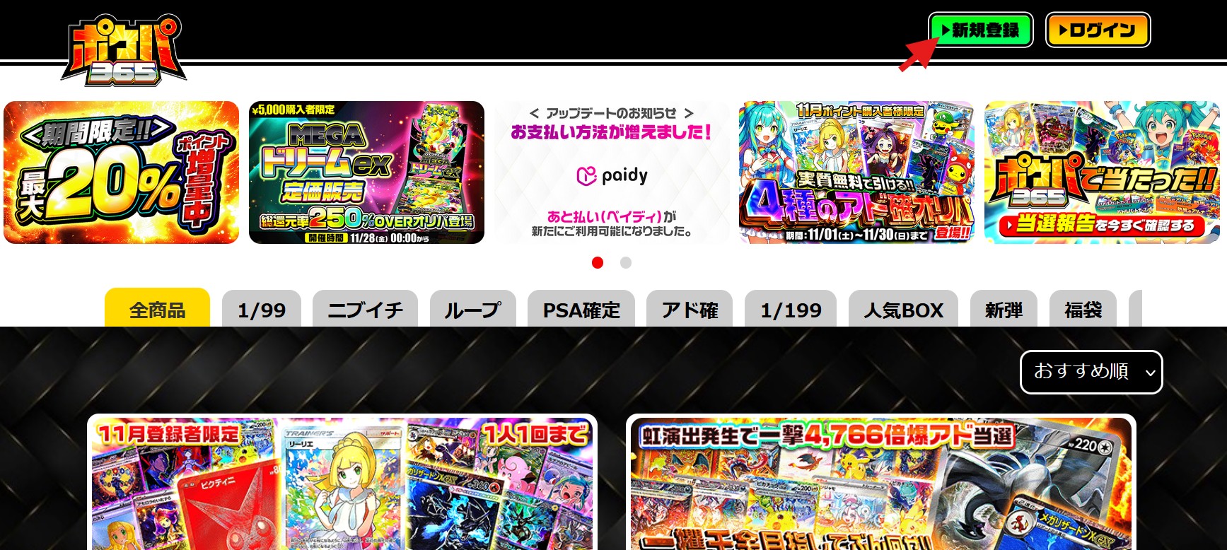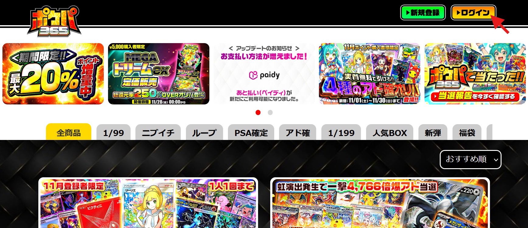オンラインオリパでは、新規会員登録時に招待コードを入力することで特典を受けられるケースが多く、ポケパ365でも招待コードを利用することが可能です。