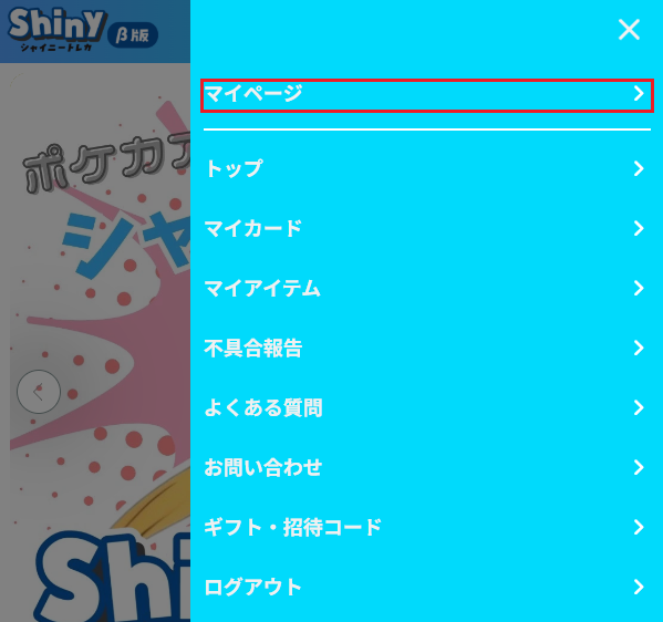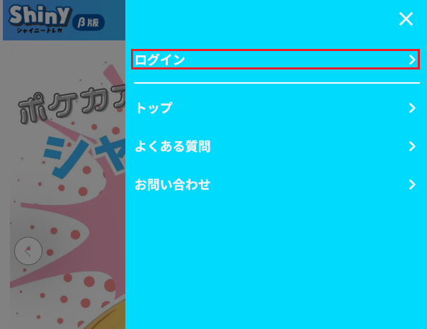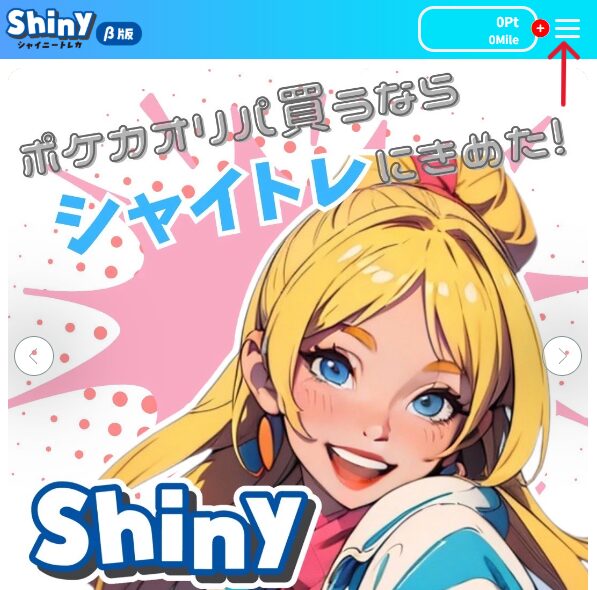 シャイニートレカにログインした状態で、画面右上の三本線を選択しましょう。