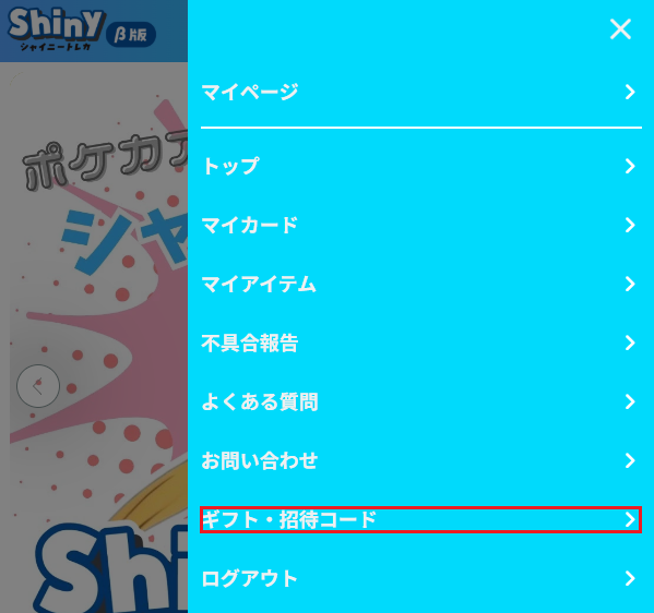 メニューの下から2番目にある「ギフト・招待コード」からコードの入力画面に移行できます。