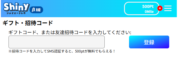 招待コードの入力者については、SMS認証などの手続きは必要ですが、完全無料で500ポイントが入手できます。