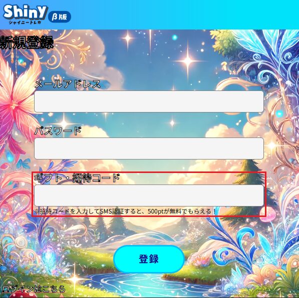 シャイニートレカでメールアドレスを使って新規会員登録する場合、招待コードを入力できるタイミングがあります。