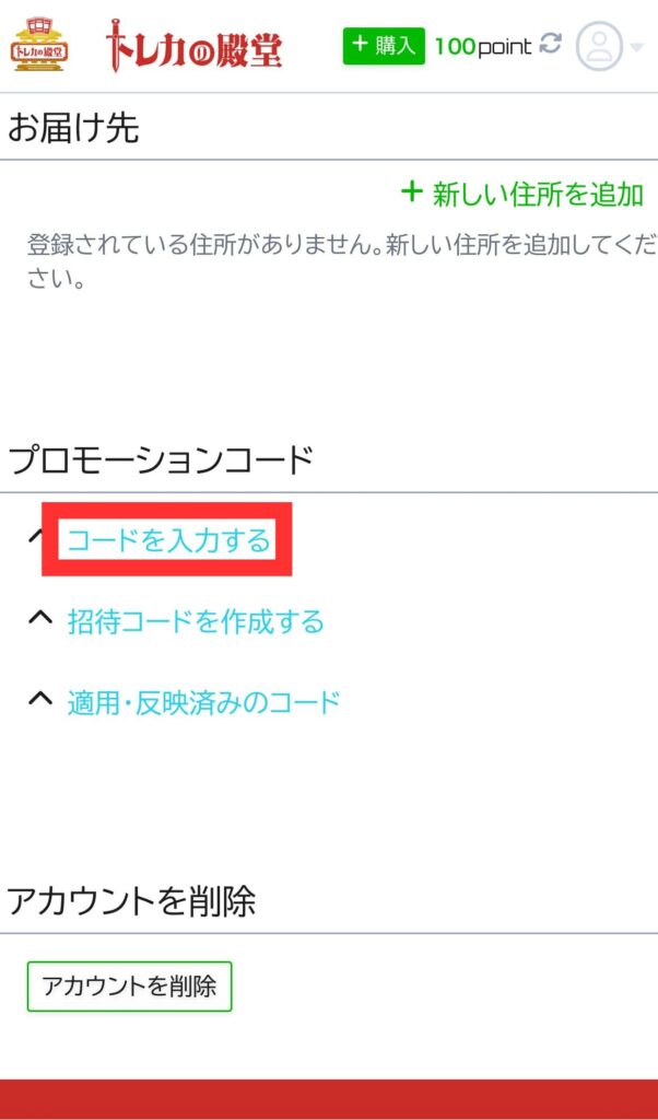 トレカの殿堂の招待コード・クーポンコードを使う手順を解説いたします。
