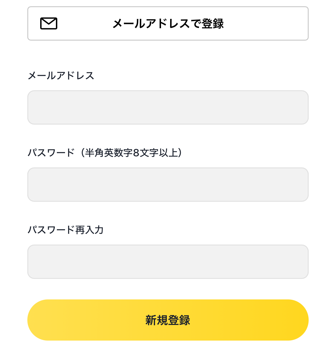 メールアドレスで登録を選んだ場合は、メールアドレスとパスワードを入力してください。