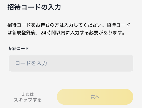招待コードは登録後24時間しか使えないため、新規登録時の入力をおすすめします。